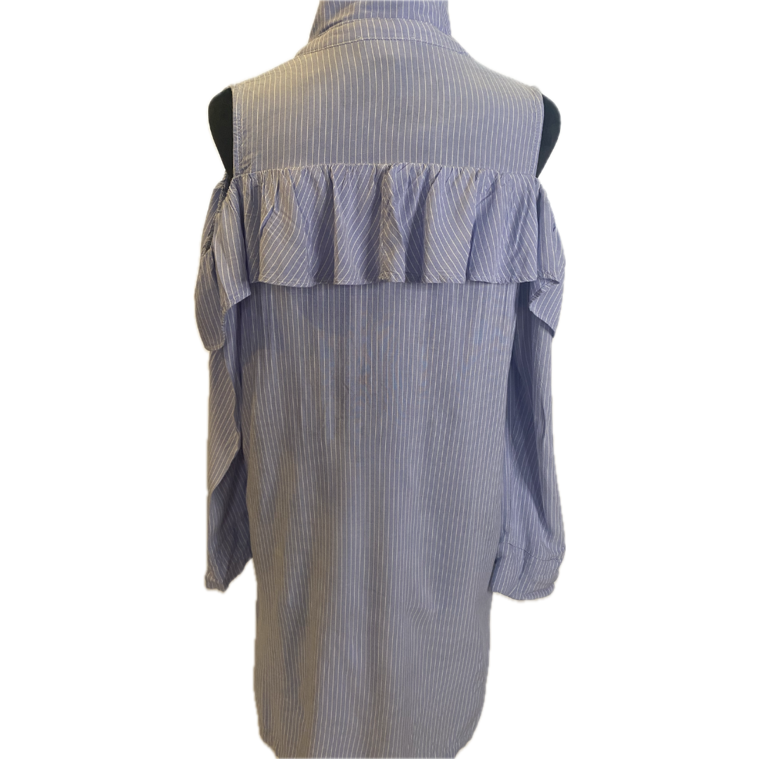 Blue and White Striped Cold Shoulder Ruffle Top (NEW)
